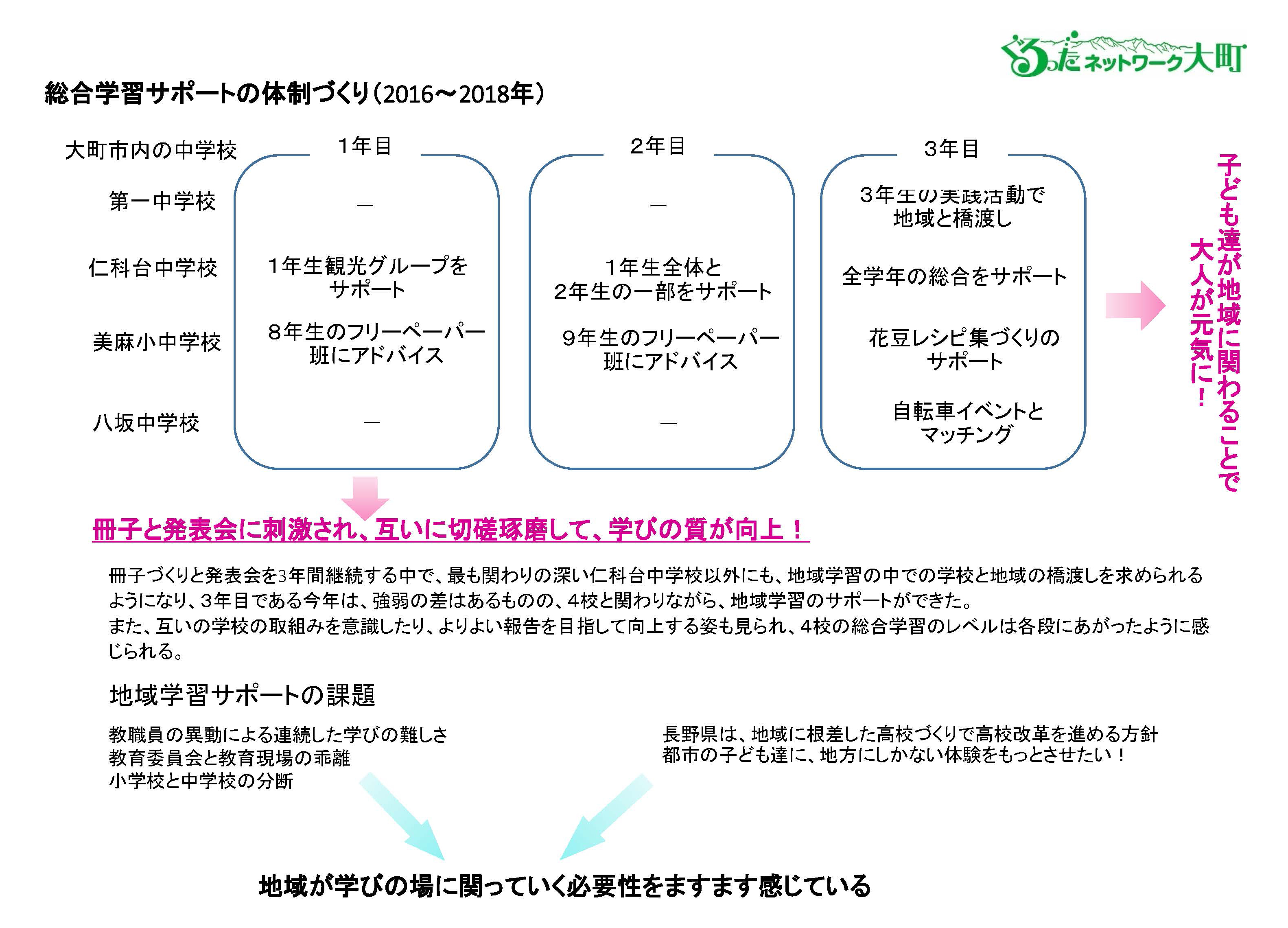 地球環境基金の助成が終わって、冊子も作れなくなってしまいましたが、この時に総合的な学習時間のサポートをしていたご縁で、今も大町中の学校運営委員を拝命しています。