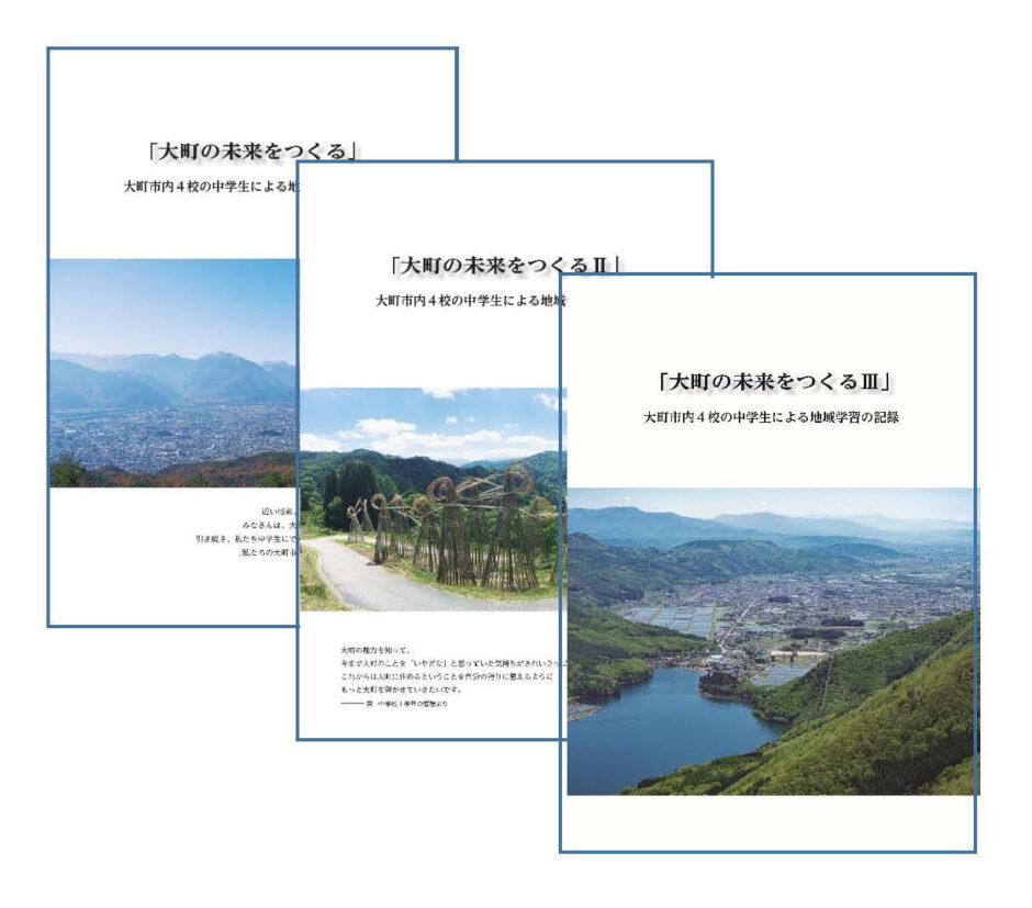 中学生がこんなに地域の未来を考えていることを、地域の方にも知ってもらいたいと、2016年~2018年の3年間、当時の市内4中学地域学習の内容を取材して「大町の未来をつくる」という冊子をまとめました。